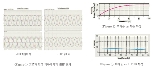 | 삼화의 하이브리드 고조파 필터(HHF)는 인버터, UPS, 엘리베이터 등 6펄스 비선형 부하에서 발생하는 고조파 성분을 흡수하여 전부하 영역에서 전압 왜형률(Vthd) 및 전류 왜형률(Ithd)을 규제치(IEEE Std, 519)이내로 만족시키고
