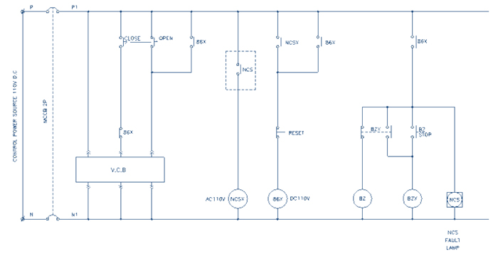 • 86X: DC 110V 릴레이(콘덴서 고장상태 표시유지 및 차단기 재투입 방지를 위한 자기유지 회로용)