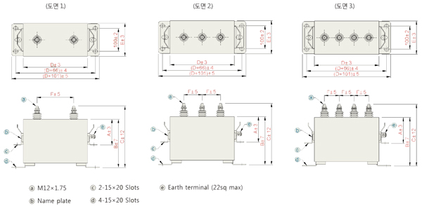 | 정격전압 | 정격용량 | TAP 분할 용량 | 형식명 | 치수[mm] | 중량[kg] | 도면 | |||||