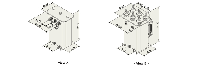 • 회로전압 정격용량 뱅크용량 치수[mm] 그림 중량 W/DC